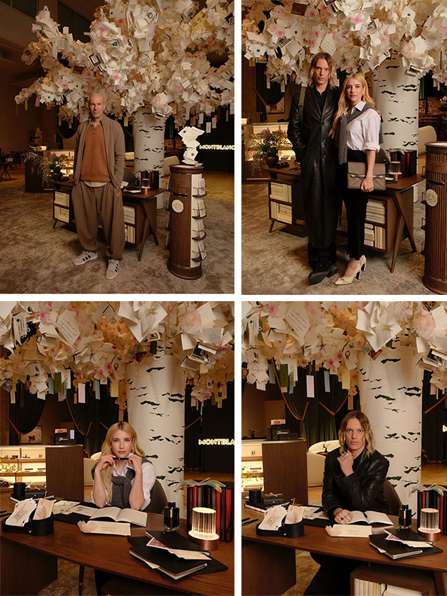 ◆'몽블랑' 밀라노 패션위크에서 럭셔리 메종이 여행, 장인정신, 필기 문화 분야의 브랜드 헤리티지를 기념하는 공간에서 새로운 레더 제품들을 공개했다. 사진은 브랜드 앰버서더 위쪽 왼쪽부터 시계방향_지네딘 지단, 제이미 캠벨 바우어, 엠마 로버츠, 엠마 로버츠, 제이미 캠벨 바우어.
