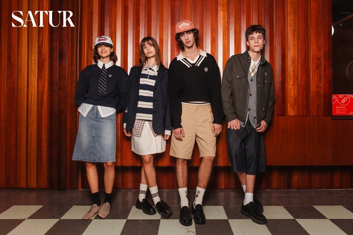 홈웨어 라인 ‘Soft Hours with MY SATUR’를 새롭게 선보이며 카테고리를 확대한 점도 눈에 띄는 부분이다. 오픈 칼라 셔츠와 밴딩 팬츠로 구성된 홈웨어 제품군은 세미 오버 핏으로 일상에서도 착용 가능한 편안한 비주얼을 제안한다. 자카드 조직의 스트라이프 소재와 촉감의 새틴 소재를 활용해 편안함과 스타일을 동시에 고려했다.