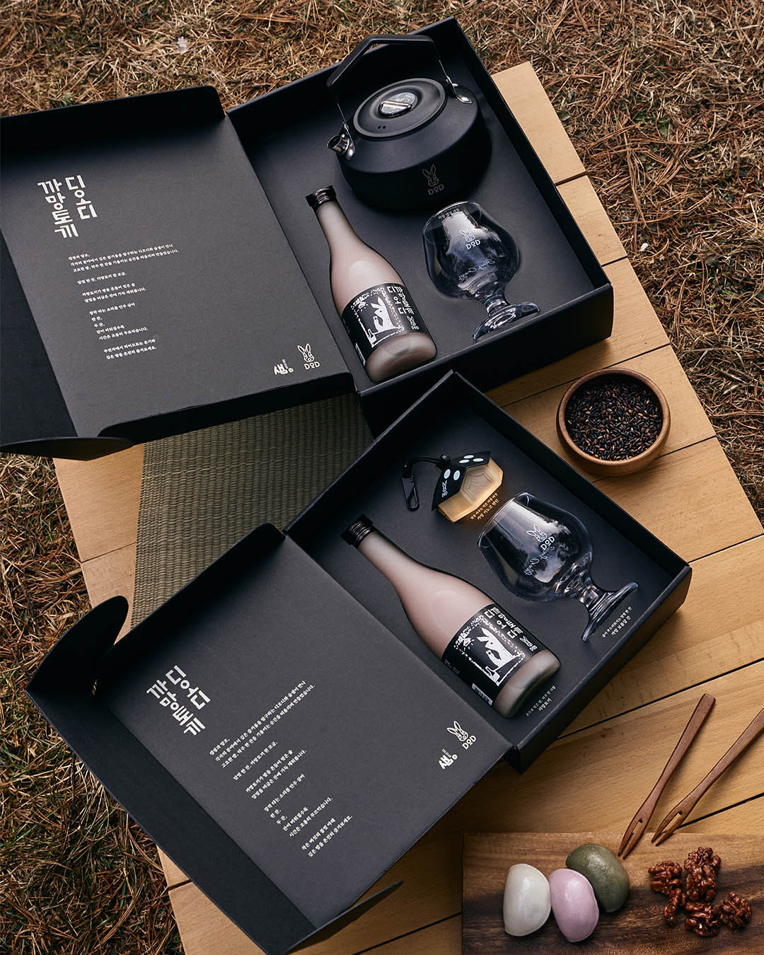 랜턴 패키지는 탁주와 까망 보름달 잔, 까망 키노코 랜턴으로 구성돼 테이블 무드까지 완성할 수 있는 세트이며, 케틀 패키지는 탁주와 까망 보름달 잔, 캠핑에 꼭 필요한 까망 캠핑 케틀로 실용성을 강화했다. 두 패키지 모두 디오디의 블랙 스몰 기어를 함께 구성, 캠핑 마니아에게는 득템 기회이자 놓칠 수 없는 한정판이다.