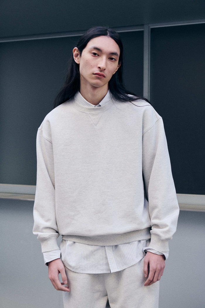 ‘에센셜 스웻 맨투맨’은 옷장에서 가장 자주 손이 가는 맨투맨의 본질에 집중한 제품이다. 전면에 V자 가셋 디자인을 적용해 목 라인의 늘어짐을 방지하고 클래식한 무드를 더했다. 뒷면 자수 디테일은 브랜드 특유의 정제된 감성을 보여준다. 여유 있는 세미 루즈 핏으로 데일리 코디에 제격이다.