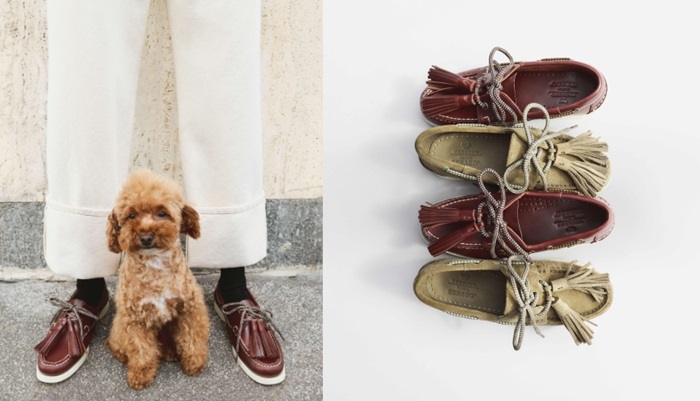 측면을 따라 이어져 신발 앞부분에서 묶을 수 있도록 디자인된 톤온톤 패턴의 레이스와 앞쪽에 자연스럽게 매달린 일체형 마이크로 태슬 디테일이 눈에 띈다. 클래식한 보트 슈즈에 유쾌한 감각을 더하는 태슬 장식은 탈착이 가능해 슈즈의 활용도를 한층 높이며, 각 제품은 위크엔드 막스마라와 세바고 두 브랜드의 로고가 함께 새겨져 있다.