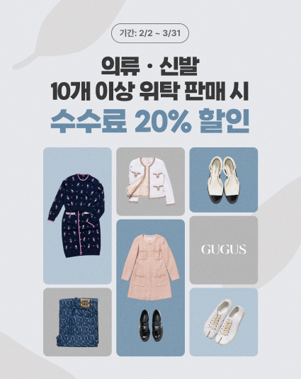 구구스는 고객들의 수수료 부담을 낮추고 보다 효율적인 판매를 돕기 위해 내달 31일까지 약 2개월간 ‘다량접수 이벤트를 운영한다. 이벤트 기간 동안 하이엔드 브랜드 의류 및 신발류를 10개 이상 위탁 접수할 경우 판매 수수료 20% 할인 혜택을 제공한다. (단, 키즈 상품은 이벤트 대상에서 제외, 기본 수수료는 할인 적용 대상에서 제외)