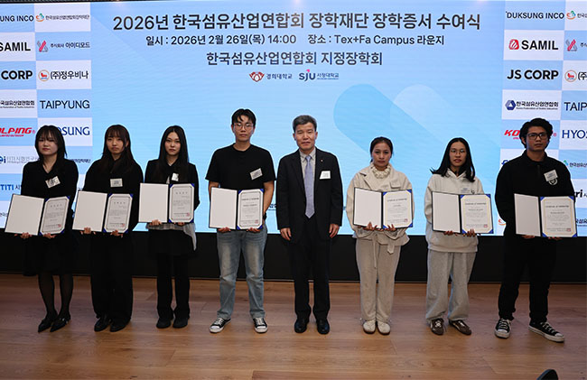 한국섬유산업연합회 장학재단(이사장 최병오, 이하 섬산련 장학재단)은 지난 26일(목) 섬유센터에서 '2026년도 장학재단 장학증서 수여식'을 개최했다.