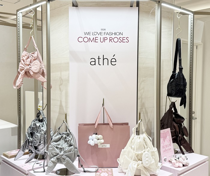 공간 콘셉트는 ‘마이 아떼, 유어 르봉(MY ATHE, YOUR RUBAN)’을 슬로건으로 삼아, 메인 제품과 연계성을 강화하는 데 초점을 맞췄다. 핑크색 오브제를 중심으로 한 구조적인 디스플레이를 통해 브랜드 정체성을 직관적으로 드러내는 방식으로 연출했다. 현장에서는 구매 고객 대상 스크런치 증정 및 SNS 공유 스티커 증정 프로모션 등 다양한 이벤트도 마련했다.