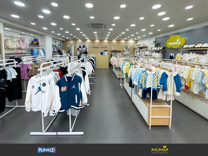 플레이키즈-프로·모이몰른 복합점은 유아 브랜드와 스포츠 기반 키즈웨어를 결합한 전략형 매장이다. 베이비·유아 카테고리와 스포츠 키즈웨어를 한 공간에 구성, 아이의 성장 단계에 맞춰 상품을 연계 제안할 수 있도록 동선을 설계했다. 이를 통해 가족 단위 고객의 체류 시간을 늘리고, 자연스럽게 구매로 이어지는 원스톱 쇼핑 환경을 구현했다.