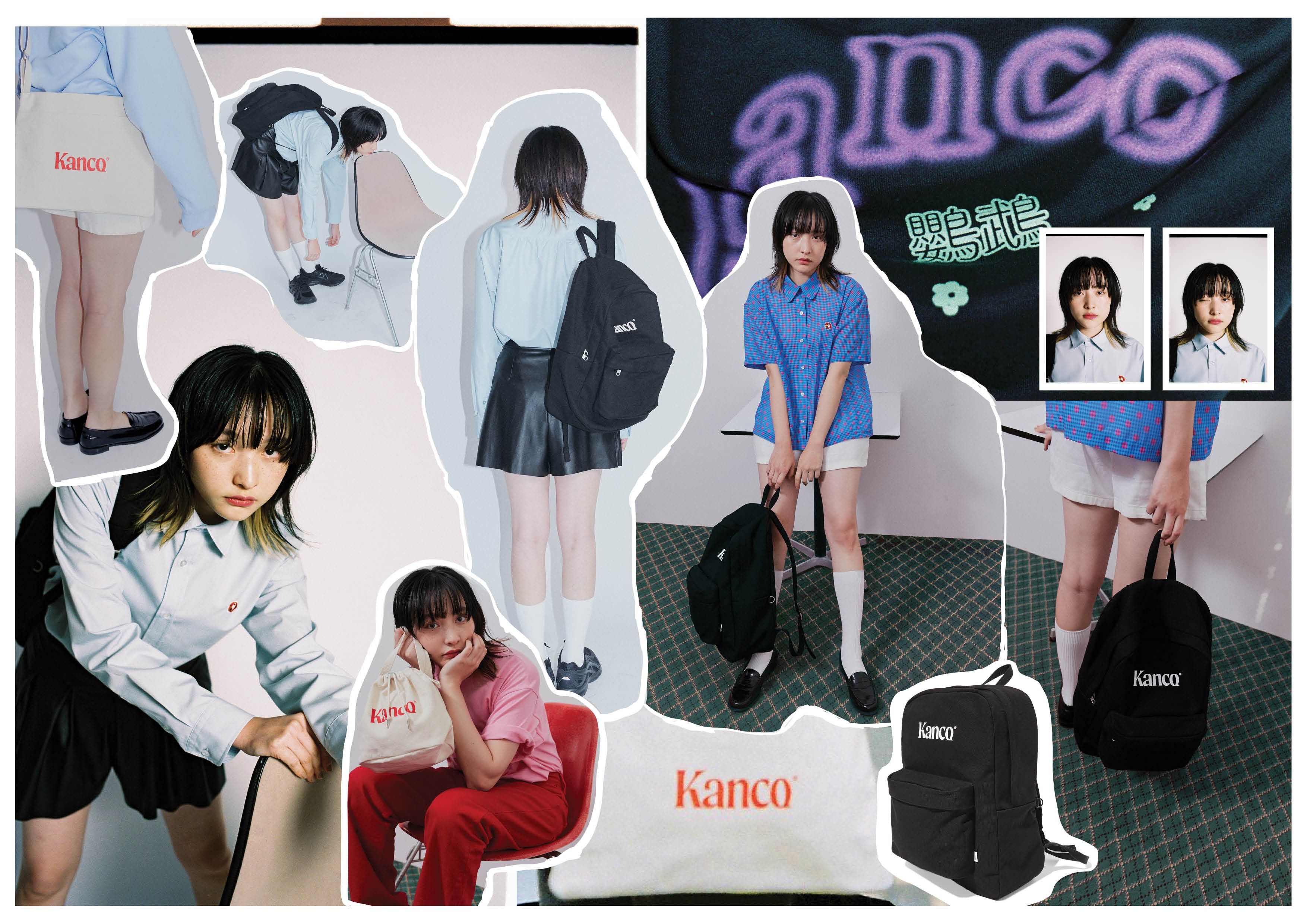 KANCO 20S/S 캔버스 백(CANVAS BAG) 컬렉션은 시즌 슬로건(I've got a name call 'kanco'!)에 어울리는 위트 있는 로고플레이와 시즌 컬러 나염을 포인트로 캔버스 소재를 사용한 라인이며, 내외부 다양한 수납공간으로 실용성을 살린 백팩과 크로스백, 바스켓백 총 3가지 스타일로 구성 되었다.
