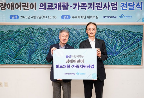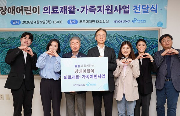 효성이 지난 9일 서울 종로구에 위치한 푸르메재단에서 ‘2026 장애어린이 의료재활 및 가족 지원사업’을 위한 후원금 1억3천만원을 전달했다.
