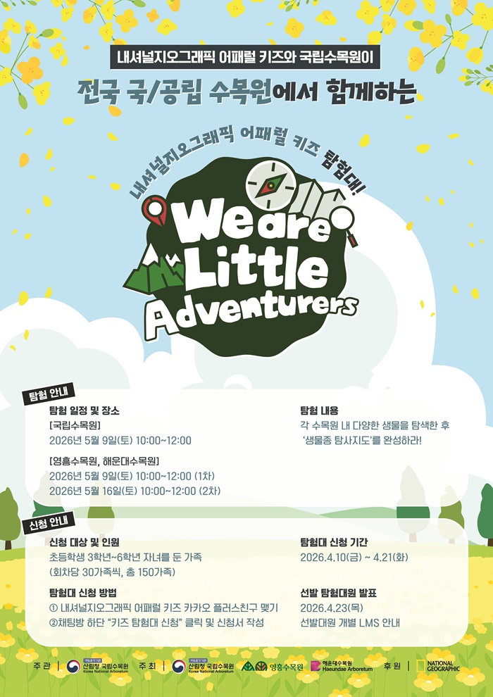 라이프스타일 전문기업 더네이쳐홀딩스(대표 박영준)가 오는 5월 국립수목원과 함께하는 자연 체험 프로그램 ‘내셔널지오그래픽 어패럴 키즈 탐험대’의 2026년도 상반기 참가자를 모집한다.