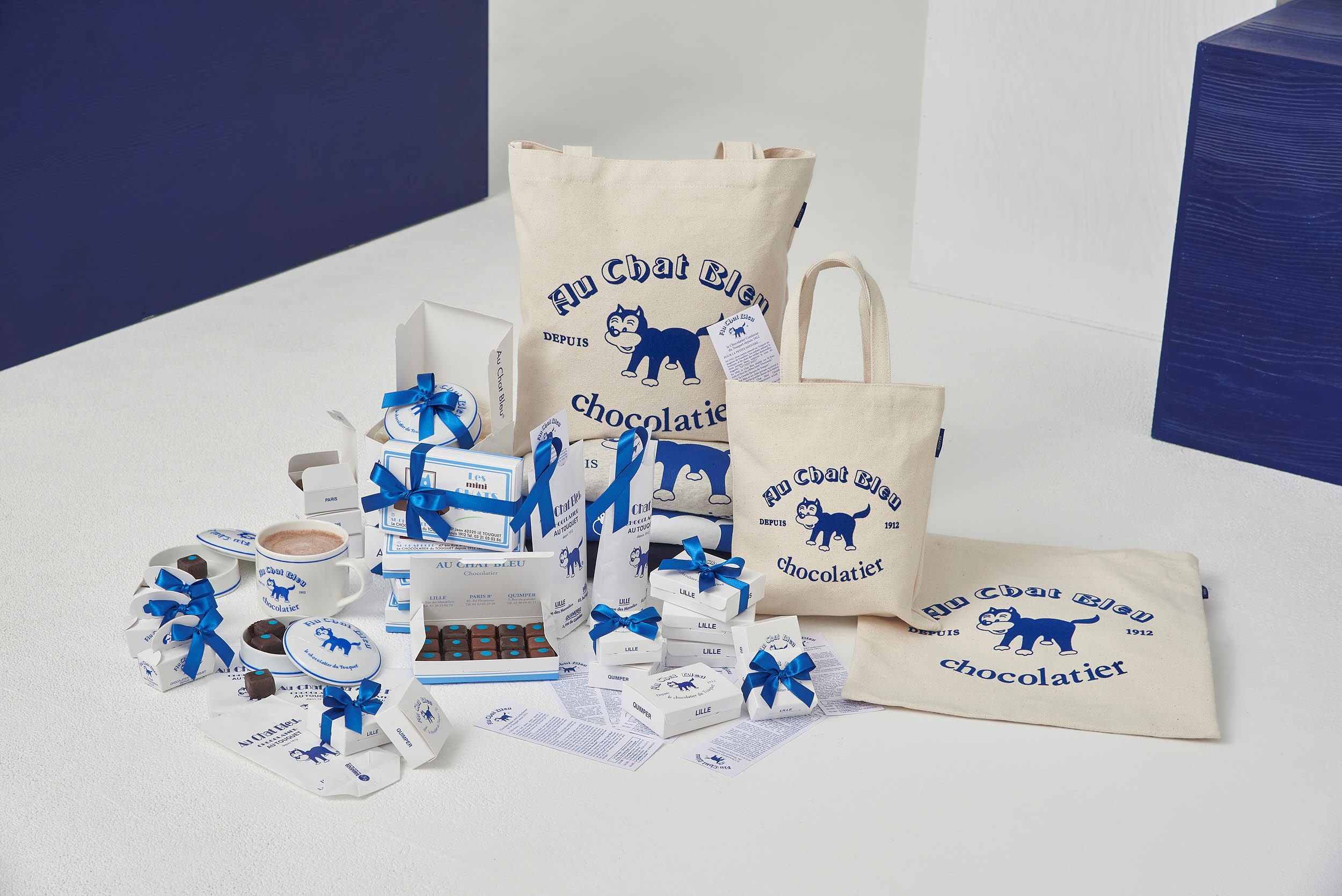 컨템포러리 멀티샵 '비이커(Beaker)'는 프랑스 초콜릿 공방 ‘오 샤 블뢰(Au Chat Bleu)’의 시그니처 초콜릿과 고양이 캐릭터가 새겨진 캡슐 컬렉션을 국내 최초로 출시했다.