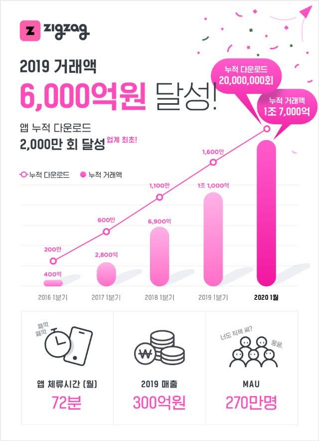 ‘지그재그’ 패션 앱 최초 2천만 다운로드… 거래액 6천억 돌파