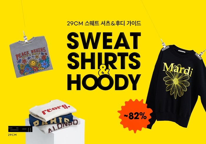 온라인 셀렉트숍 29CM(대표 윤자영)가 최대 82% 혜택의 ‘스웨트 셔츠&후디 가이드’ 기획전을 개최한다.