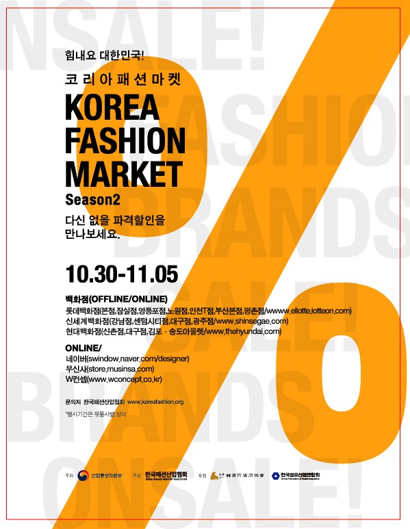 지난 6월 개최된 코리아패션마켓 시즌1은 한국패션산업협회(회장 한준석)의 판매 촉진을 위한 다양한 마케팅 지원과 판매수수료 인하, 대금 조기지급 등 참여 유통사의 실질적인 지원으로 행사에 참여한 193개 브랜드 기업들의 단기 매출 확대에 기여한 바 있다.