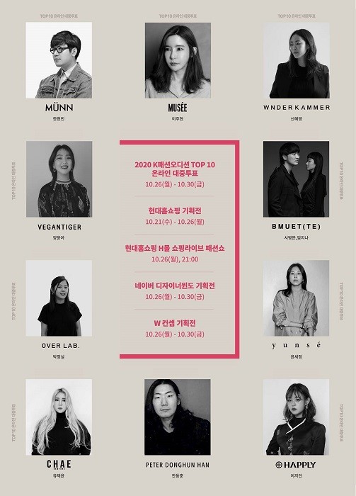 또한 Top10 브랜드의 제품을 직접 만나보기를 희망하는 소비자를 위해 10월 21일부터 10월 26일까지 H몰, 10월 26일부터 10월 30일까지 W컨셉과 네이버 디자이너윈도에서 온라인 기획전이 연이어 전개되며 다양한 할인 이벤트도 함께 준비된다.