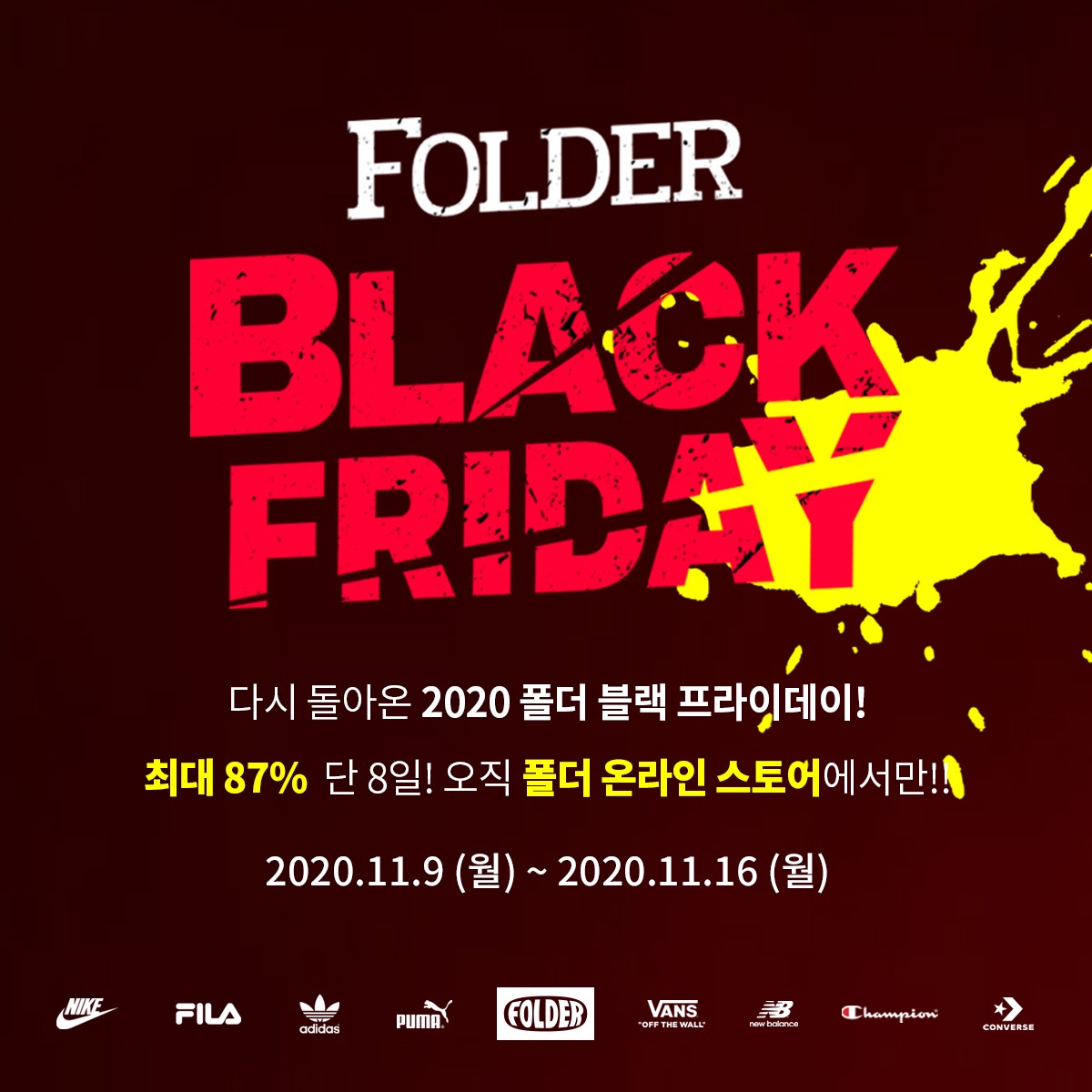 슈즈 라이프스타일 편집숍 폴더의 블랙프라이데이 행사는 11월 16일까지 폴더 공식 온라인몰에서 단독으로 진행된다.