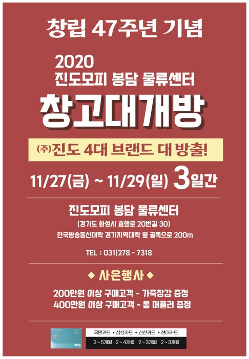 모피 명가 진도(대표 임영준)가 창립 47주년 기념 물류 창고 대 개방 세일을 실시한다.