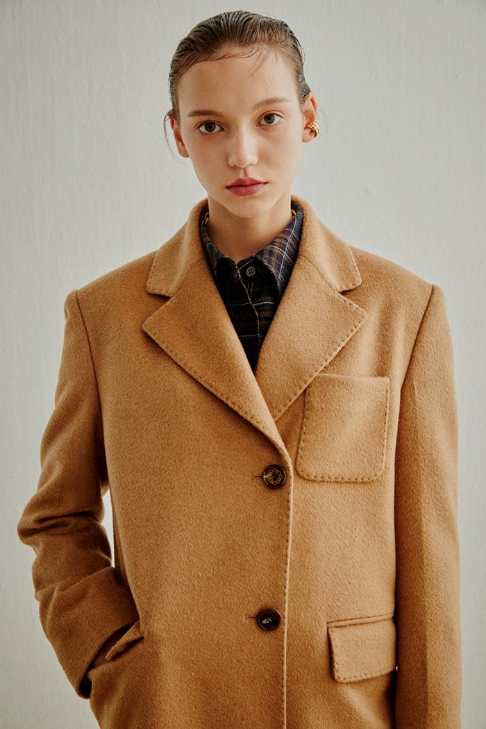 이 제품은 세계 최고급 원단산지인 이태리 비엘라 지역에 위치한 유명 울 제조사 ‘똘레뇨(TOLLEGNO)1900’社의 프리미엄 낙타모 소재 100%가 사용돼 보온성이 우수할 뿐 아니라, 물 흐르는 듯한 특유의 원단결과 고급스러운 윤기가 드러난다. 또, 정제된 라펠[1] 디자인에 간결한 H라인 실루엣을 적용해 단정하면서도 스타일리시한 분위기를 연출한다.