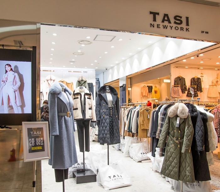 - ‘타시뉴욕(TASI newyork)’ 이라는 자체 브랜드다. 20대 후반에서 30대, 40대 커리어 여성과 미시 여성을 위한 제품을 생산하며 국내 뿐 아니라 중국 등 해외를 상대로 도매업을 하고 있다.