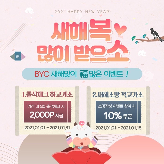 BYC(대표 고윤성)가 신축년 새해를 맞아 1월 한 달간 다양한 이벤트를 진행한다.