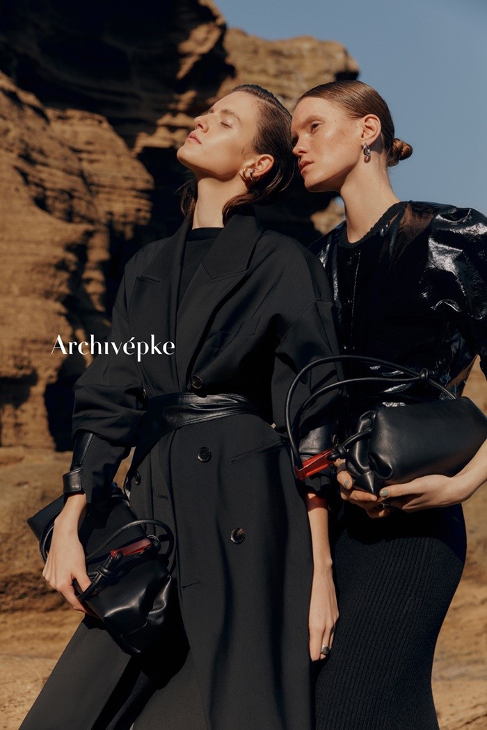 브랜드의 시그너처인 플랫 슈즈를 업그레이드했다. 앞코가 뾰족하면서도 슬림한 버전의 ‘앱크 트라이앵글 플랫(épke triangle flat)’, 5cm 굽의 ‘보우 펌프스(bow pumps)’ 등 시크한 제품들을 선보인다. 특히 아카이브 앱크의 슈즈 라인은 외피와 내피 모두 소프트 램 레더를 사용해 편안한 착화감을 선사한다.