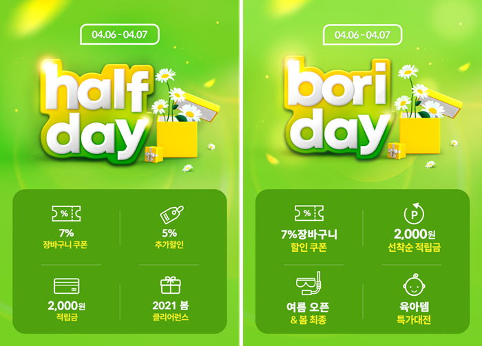 매달 각 사이트에서 동시에 진행되는 ‘하프데이’와 ‘보리데이’ 특가전은 트라이씨클이 자랑하는 합리적인 상품 판매가를 극대화한 행사다. 이번 4월에는 패션, 뷰티, 리빙, 레저 등 다양한 카테고리에서 최대 92% 할인을 진행한다.