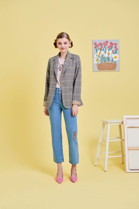 또한 그레이 컬러 원버튼 체크 자켓과 소매 레터링 스판 더블 자켓으로 간절기 데일리 룩을 연출하였으며, 다양한 이너 착장과 조화롭게 어울릴 수 있는 베이직한 디자인으로, 지금부터 여름 간절기까지 가볍게 걸칠 수 있는 아이템을 소개했다.