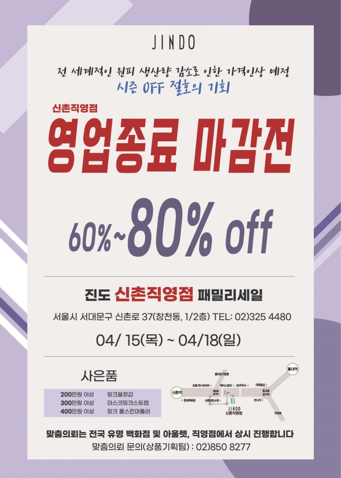 진도, 신촌 직영점 영업 종료 마감전