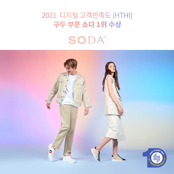 프리미엄 컨템포러리 슈즈브랜드 소다(SODA)는 한국마케팅협회가 주관하는 ‘2021 제9회 대한민국마케팅대상 디지털고객만족도(HTHI: Heart to Heart Index) 구두부문’에서 1위를 수상했다.