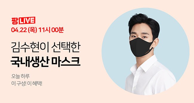 22일 오전 11시부터 1시간 동안 진행되는 라이브 방송에서는 ‘김수현 마스크’로 유명한 케이시크릿 패션마스크 6종과 식약처 인증 KF94 마스크 10매를 세트로 구성해 소개한다. 라이브 방송에서만 만나볼 수 있는 세트인 ‘김수현 마스크 세트’는 역대 최대할인율을 적용한 금액인 28,900원에 구매가 가능하다.