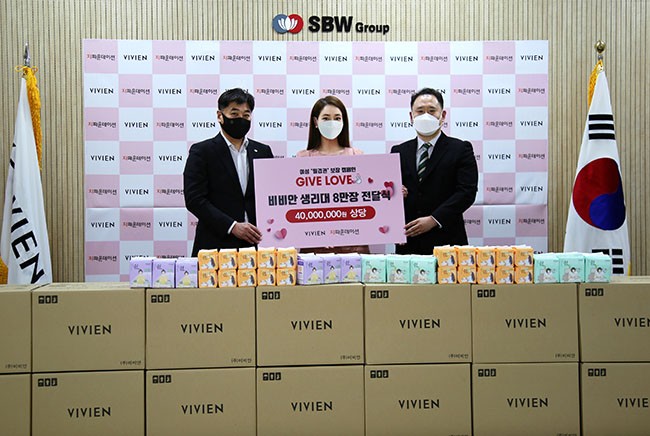 비비안(대표 손영섭)이 모델 이민정과 함께 진행한 '기부러브(Give Love)’ 캠페인 통해 생리대 8만장을 기부하는 전달식을 진행했다.