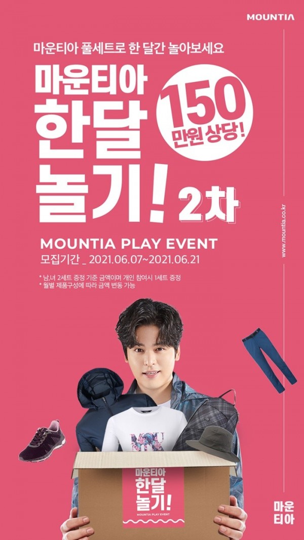 이번 이벤트는 캠핑, 주말농장, 낚시 등 아웃도어를 마음껏 즐기고 공유하고자 기획됐다. 마운티아는 참가자들에게 다양하게 코디할 수 있는 마운티아 자켓, 상·하의, 신발, 모자 등 총 150만 원 상당의 풀세트 2세트를 제공한다.