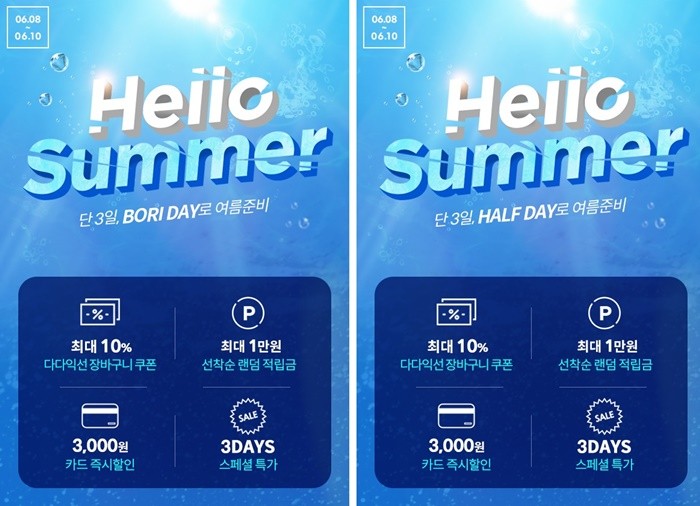 행사 기간 하프클럽에서는 5, 7, 15만 원 이상 구매 시 최대 10% 할인되는 장바구니 쿠폰 3장을 일괄 지급하며 보리보리에서는 3, 5, 10만 원 구매 시 동일 혜택을 제공한다. 또한 매일 오전 10시와 오후 2시, 오후 6시에는 앱에서 사용 가능한 전용 적립금을 최대 1만 원 선착순으로 지급한다.