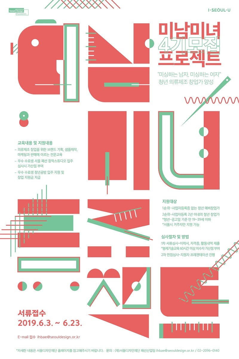 서울디자인재단(대표이사 최경란)은 의류제조 분야 청년 전문인력을 양성하기 위한 ‘미남미녀 프로젝트’ 4기를 모집한다고 밝혔다.