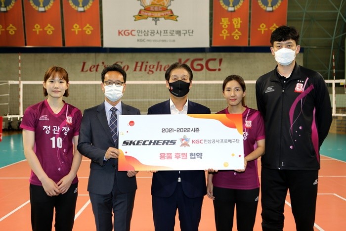 지난 10일 대전 KGC스포츠센터에서 진행된 협약식에는 스케쳐스코리아 김상기 이사와 KGC인삼공사 스포츠단 전삼식 단장이 참석했다. 이번 협약으로 스케쳐스는 2021-2022시즌 도드람 V리그가 진행되는 1년간 경기 용품을 포함한 필요 제품들을 후원할 예정이다.