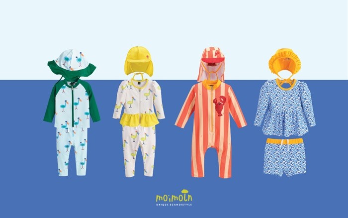 이번 프로모션에 해당하는 제품으로는 모이몰른만의 유니크한 디자인과 컬러가 돋보이는 수영복과 타올가운이 준비되어 있다.