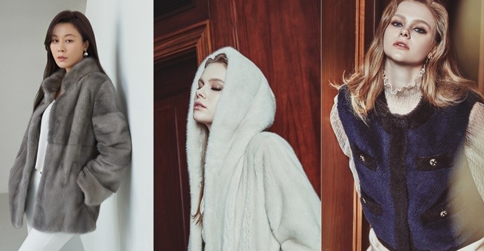 사진 왼쪽부터 셀렙샵 에디션 ‘휘메일 풀스킨 하이넥 밍크코트’, 칼라거펠트 프리메라 풀스킨 밍크 후드 롱 코트’와 칼라거펠트 ‘프리메라 양모 베스트’