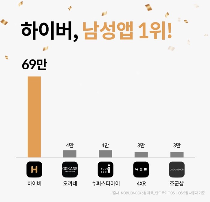 하이버, 남성의류 앱 1위 달성