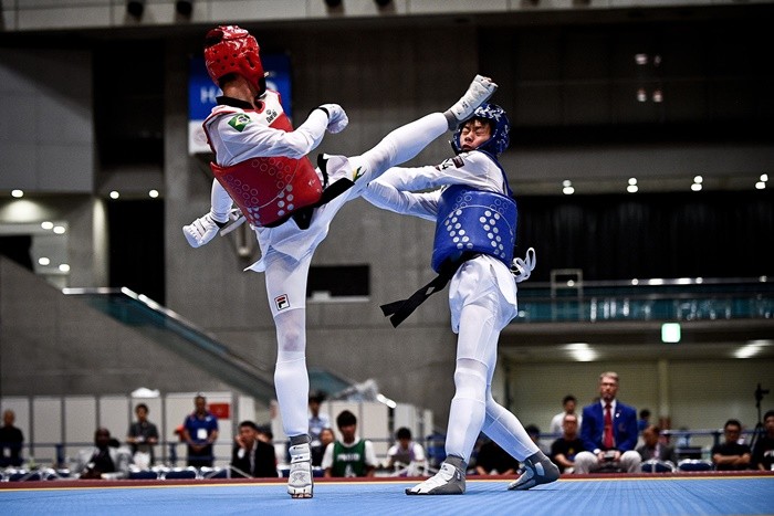 2019년 9월 도쿄올림픽 테스트 이벤트 현장. 휠라가 개발에 참여한 태권도 경기복을 입고 브라질 멜로 파울로(왼쪽) 선수가 경기에 참여 중이다.