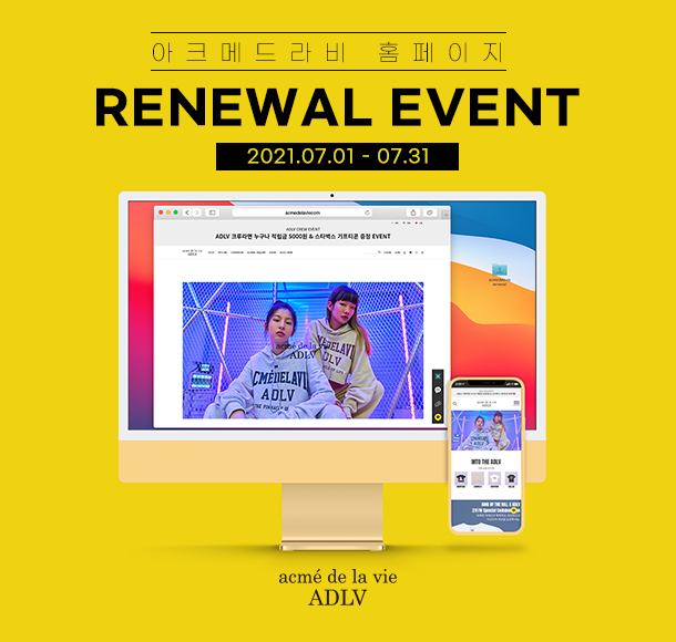 스트리트 캐주얼 브랜드 ‘아크메드라비’가 공식 홈페이지를 리뉴얼하고 이를 기념해 7월 한 달간 리뉴얼 이벤트를 진행한다.