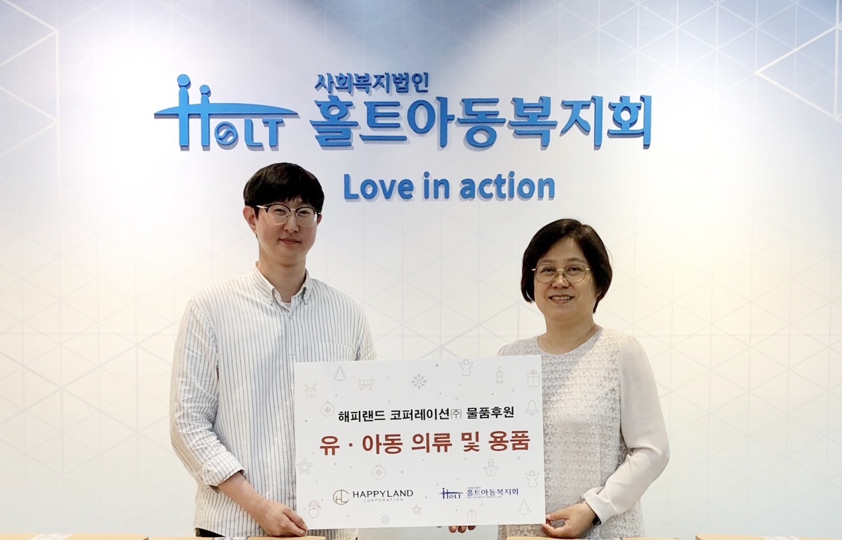 지난 2007년 홀트아동복지회와 후원 협약을 맺은 해피랜드 코퍼레이션은 매년 어린이날, 추석, 연말 등 시기별로 1억원 상당의 물품 후원을 13년째 지속해오고 있다.