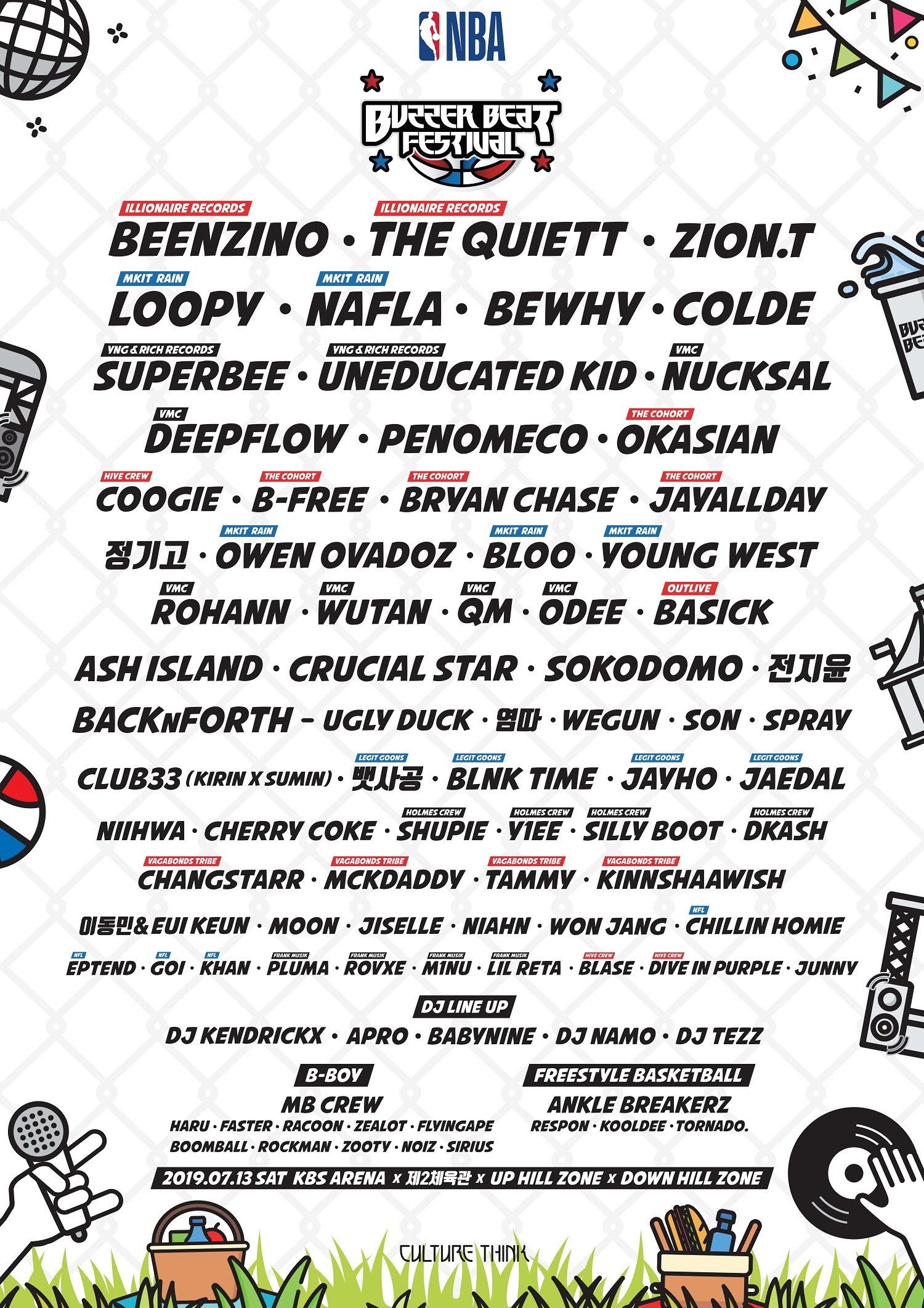 공연에는 NBA 전속 모델로 활동 중인 대세 힙합 뮤지션 ‘나플라’와 ‘루피’, ‘블루’를 비롯해 한국 힙합 씬의 절대강자 ‘빈지노’, ‘더콰이엇’, ‘자이언티’, ‘비와이’ 등 국내 최정상 힙합 아티스트들이 대거 참여해 열정적인 무대를 펼칠 계획이다. 여기에 개성있는 스트릿 컬처 퍼포먼스 팀들이 합류해 환상적인 공연을 선보이고, 관객들이 함께할 수 있는 풍성한 이벤트도 마련돼 현장을 뜨겁게 달굴 전망이다.