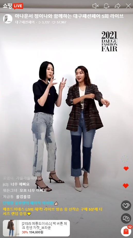 대구패션페어 연합패션쇼(DFF Fashion Show)는 대구패션페어 공식 유튜브를 통해 실시간 송출, 네이버 브이 라이브를 통해 대구패션페어에 참가한 다양한 브랜드의 패션쇼를 감상할 수 있었다. 더불어 네이버 쇼핑라이브를 통해 유명 인플루언서 15명과 함께 온라인 라이브커머스 판매 방송도 병행 진행, 코로나19로 인해 어려움을 겪고 있는 패션업체와 브랜드 홍보 강화 및 실질적인 내수 매출 증대에 기여했다.