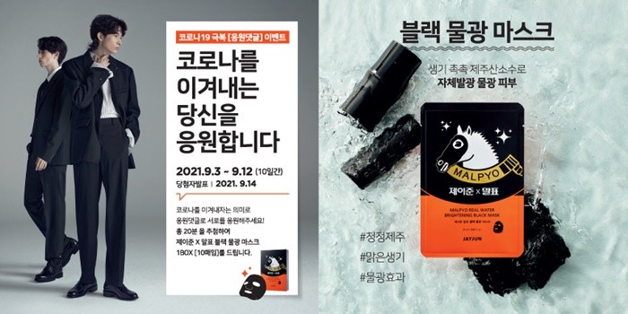 이번 특별 이벤트 사은품인 ‘제이준X말표 물광 마스크팩’은 제이준과 말표의 콜라보레이션을 통해 출시된 제품으로, 피부 수분 충전 및 활력에 도움 되는 성분으로 구성됐다. 더욱이 대나무 숯을 특수 가공한 죽탄 시트지를 사용해 자극을 최소화시킴과 동시에 밀착감은 강화시켜 피부가 건조해지기 쉬운 간절기 시즌에 데일리 팩으로 활용하기 제격이다.