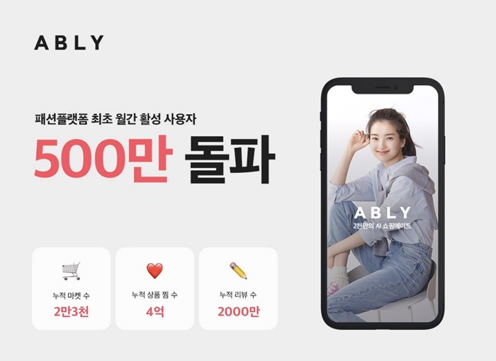 에이블리, 패션앱 최초 월 이용자 수 500만 명 돌파