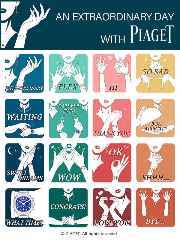 피아제가 처음으로 선보인 카카오톡 이모티콘은 클릭 시 움직임이 더해져 감정을 더욱 실감나게 표현했으며, 피아제의 폴로 워치부터 포제션 주얼리를 착용한 인물의 모습을 통해 피아제의 우아하고 화려한 무드 역시 느낄 수 있다.