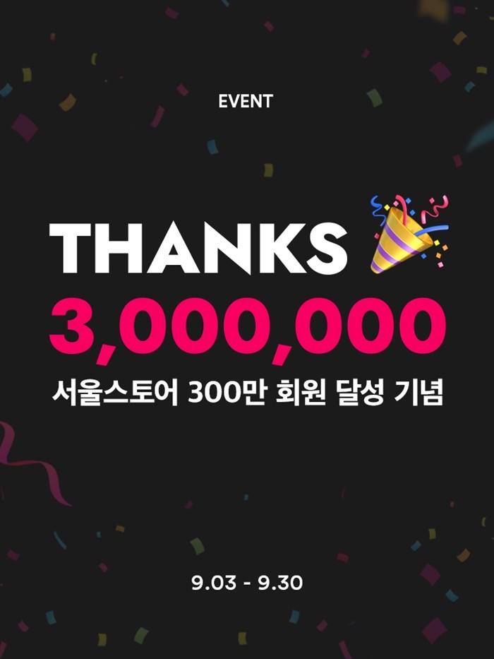 패션, 뷰티 온라인 편집숍 서울스토어가 300만 회원들과 함께하는 ‘THANKS 3,000,000’ 이벤트를 진행한다.