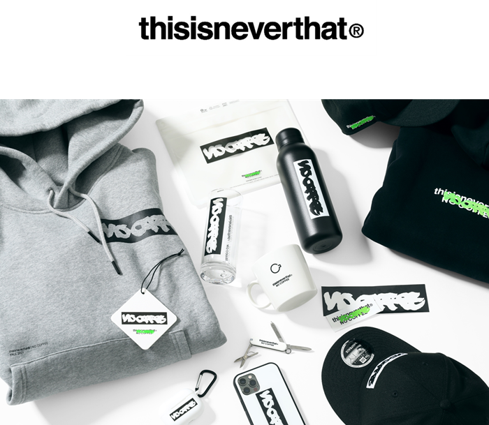 스트리트 캐주얼 브랜드 ‘디스이즈네버댓’이 일본 후쿠오카 기반의 라이프스타일 브랜드 ‘노커피(NO COFFEE)’와 다양한 협업 라인을 선보인다.