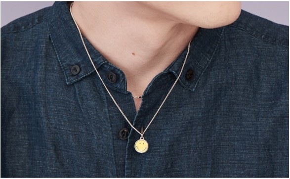 의류 외에 주얼리에서도 스마일을 찾아볼 수 있다. 주얼리 브랜드 ‘빈티지헐리우드’는 희망과 긍정의 아이콘 스마일리와 함께 ‘The moment smile on Camera’ 콜라보레이션 컬렉션을 공개했다. 기본 빈티지헐리우드의 시그니처 진주 아이템에 스마일 모티브를 가미한 목걸이로 위트 있는 스타일링을 선보일 수 있으며, 스마일 쉐입의 반지와 귀걸이는 심플한 룩에 확실한 포인트가 된다.
