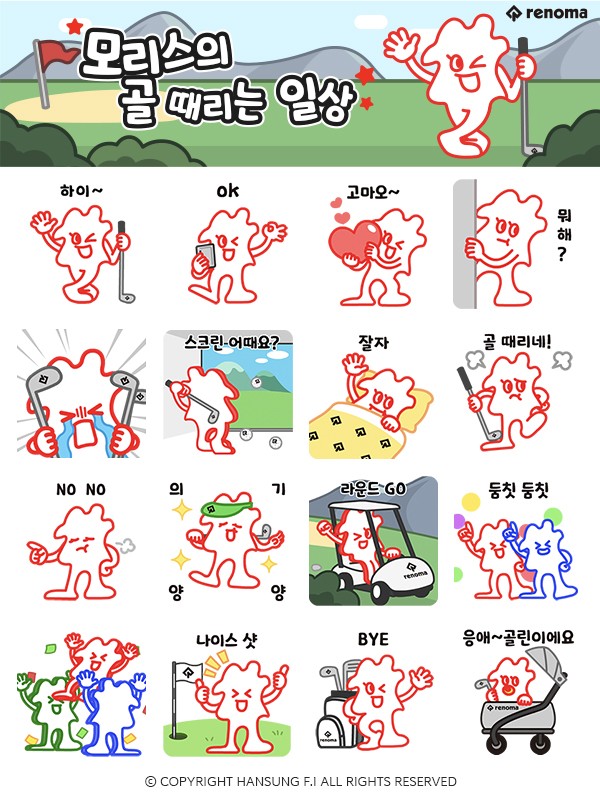 한성에프아이(대표 김영철)의 ‘레노마 골프’가 고객들과 소통을 위해 모리스 캐릭터를 활용한 카카오톡 이모티콘을 새롭게 선보이고 선착순 증정 이벤트를 진행한다.