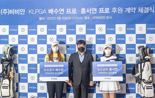 비비안(대표 손영섭)은 지난 15일 한국여자프로골프(KLPGA) 배수연, 홍서연 선수와 공식 후원 계약을 체결했다. 비비안에서 골프 선수를 후원하는 것은 이번이 처음이다.
