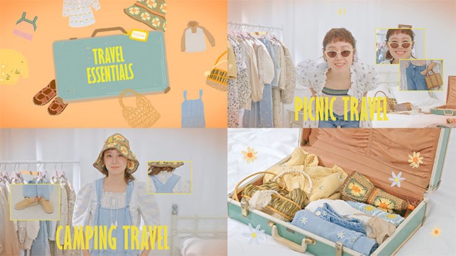 매력적인 크로쉐 니트, 로브 원피스의 매치해 매력적인 ‘피크닉’룩을, 스타일리쉬한 데님 오버롤과 블라우스, 스트로햇의 매치로 활동적인 자연으로의 ‘캠핑’룩을 선보였다. 그리고, 로맨틱한 블라우스와 포인트 액세서리를 매치한 ‘리조트’룩을 선보이며, 다양한 여행지에서의 스타일링, 애티튜드를 제안한다.